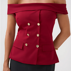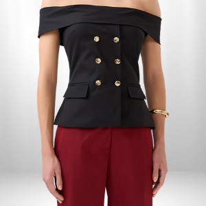 A Blusa Bianca é confeccionada em alfaiataria, um tecido de gramatura encorpada e textura suave, com leve rigidez e pouca elasticidade. A peça oferece um caimento solto ao corpo, proporcionando conforto e liberdade de movimento. O modelo ombro a ombro é sofisticado, com detalhes de lapela grossa sobre os ombros, bolsos frontais falsos e botões dourados diferenciados, que agregam charme à peça. A blusa ainda conta com uma abertura em zíper na parte de trás, garantindo praticidade e um ajuste perfeito.
