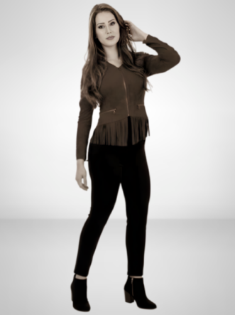 Elevada pela textura aveludada da camurça, esta jaqueta combina o charme do movimento das franjas com um corte de alta alfaiataria. Seu design foi projetado para oferecer um caimento impecável que contorna a silhueta feminina de forma sutil e elegante, garantindo conforto absoluto sem abrir mão do estilo marcante. Uma peça versátil e atemporal, perfeita para adicionar personalidade a qualquer look.