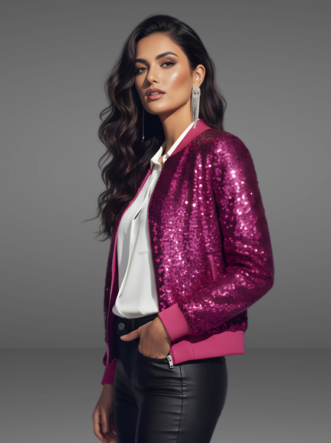 Brilhe com Estilo e Elegância! O Casaco Bomber Feminina em Paetê é perfeita para adicionar um toque de glamour ao seu visual com seu design elegante e cheio de brilho.
