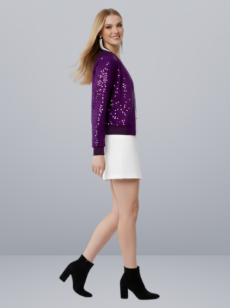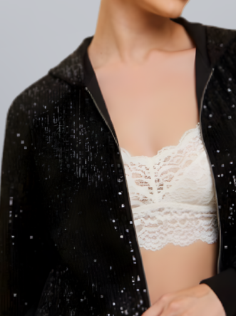 A Jaqueta Verônica com Capuz em Paetê tem Zíper de fechamento. Forro e Capuz é perfeita para mulheres adultas que buscam um visual elegante e cheio de estilo. Feita em paetê, essa jaqueta é ideal para ocasiões especiais, como festas e baladas. Seu brilho e detalhes garantem um look sofisticado e moderno. Com um design exclusivo, essa jaqueta é uma peça única que vai te destacar em qualquer evento. Atemporal e versátil, é uma ótima opção para quem busca um toque de glamour em seu guarda-roupa.