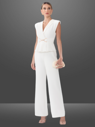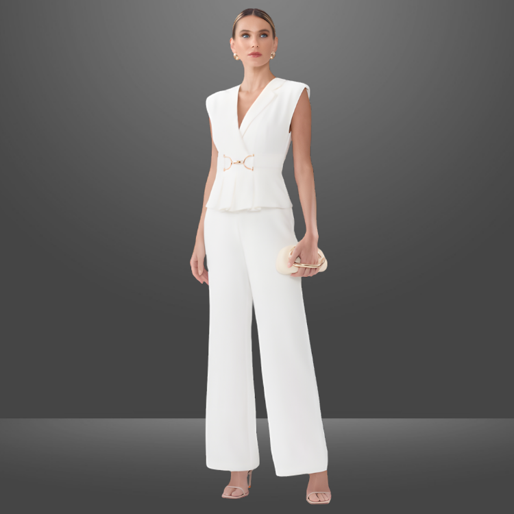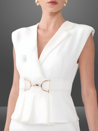 Detalhes do Produto: Peplum, ombreiras e fivela niquelada.