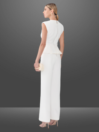 O Macacão Rayanne Longo é confeccionado em Alfaiataria, um tecido de gramatura encorpada e uma textura suave com pouca elasticidade. A peça possui um caimento ajustado na parte superior e mais solto na parte inferior, apresentando um design longo com peplum na barra. Com ombreiras elegantes e uma fivela frontal niquelada, o macacão conta ainda com uma prática abertura em zíper na parte de trás, proporcionando um ajuste sofisticado e confortável.