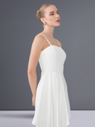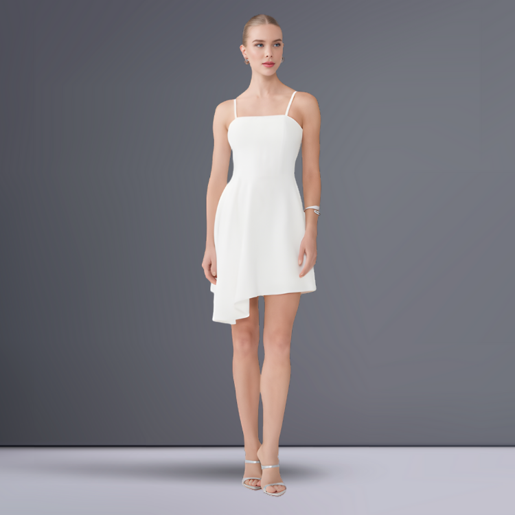 Detalhes do Produto: Alças finas, estrutura de barbatanas e recorte na cintura.