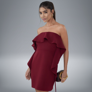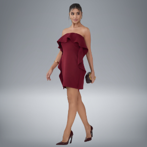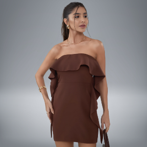 Detalhes do Produto: Tomara que caia, babados sobrepostos, modelo curto e abertura em Zíper.