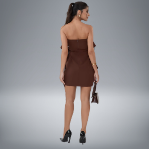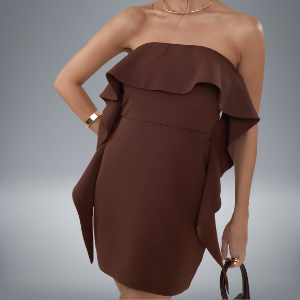 O Vestido Athena é confeccionado em Alfaiataria Lisa, um tecido de gramatura média que oferece um caimento encorpado e elegante. Com leve presença de elastano, proporciona conforto ao vestir, ainda que mantenha a estrutura típica dos tecidos planos. O design valoriza com delicadeza a silhueta feminina, destacando-se pelo decote tomara que caia com uma charmosa camada de babado sobreposta, que se estende suavemente em caudas laterais, adicionando sofisticação ao visual. De comprimento curto e fechamento com zíper invisível na parte de trás, o modelo une estilo e sofisticação.