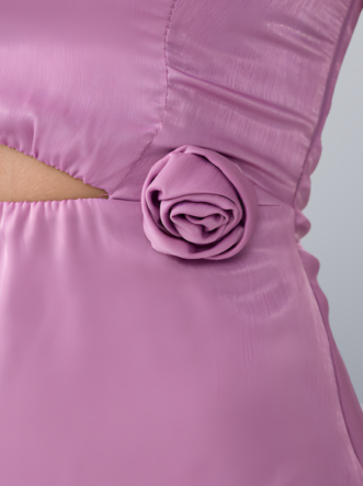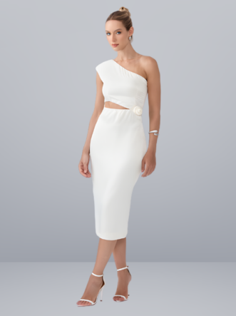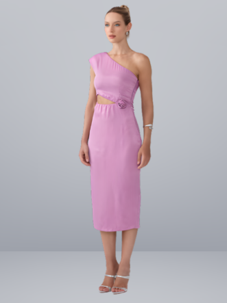 O Vestido Jurema é confeccionado em cetim aveludado, um tecido macio que, embora não seja altamente elástico, proporciona um caimento justo e elegante ao corpo. A peça conta com um forro interno que garante maior conforto e segurança. No modelo midi, o vestido apresenta um recorte vazado na cintura, realçado por um detalhe de flor 3D na mesma altura. Abertura em zíper na parte lateral do produto.