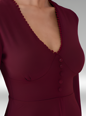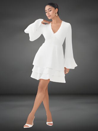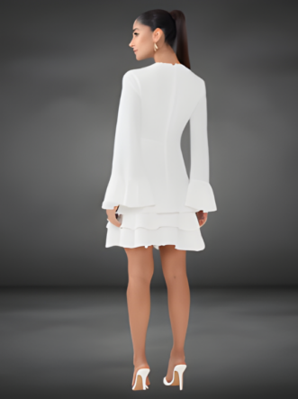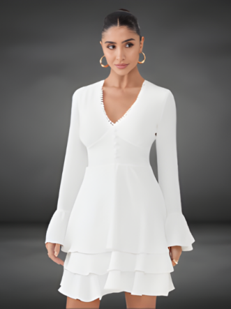 O Vestido Sheyla é confeccionado em crepe, um tecido plano de gramatura fina, leve e com toque suavemente enrugado, característico de sua textura elegante. Com um caimento fluido e delicado, o modelo proporciona conforto e liberdade de movimento, ideal para quem valoriza leveza e sofisticação no dia a dia. Sua transparência sutil adiciona charme ao visual, enquanto o decote em V alonga a silhueta. O abotoamento forrado fixo confere um acabamento refinado, e os delicados babados aplicados nas mangas e na barra da saia trazem um toque moderno à peça.