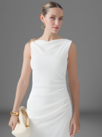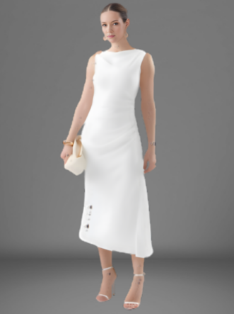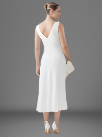 O Vestido Verônica é confeccionado em crepe, um tecido plano de característica leve e gramatura fina, com aspecto enrugado em função de sua textura. Com caimento fluido e solto ao corpo, proporciona conforto e liberdade de movimento em cada passo. Seu design marcante conta com decote assimétrico na parte frontal e um elegante decote em V nas costas, além de delicados franzidos laterais que valorizam a silhueta. O acabamento com zíper invisível garante praticidade sem comprometer o visual refinado. Características do tecido: Tecido plano de característica leve e gramatura fina, com aspecto enrugado em função de sua textura. Não possui elasticidade, tem toque suave e certa transparência. Possui mais fluidez em seu caimento.