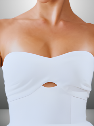 Detalhes do Produto: Tomara que caia, fenda frontal e estrutura de barbatanas
